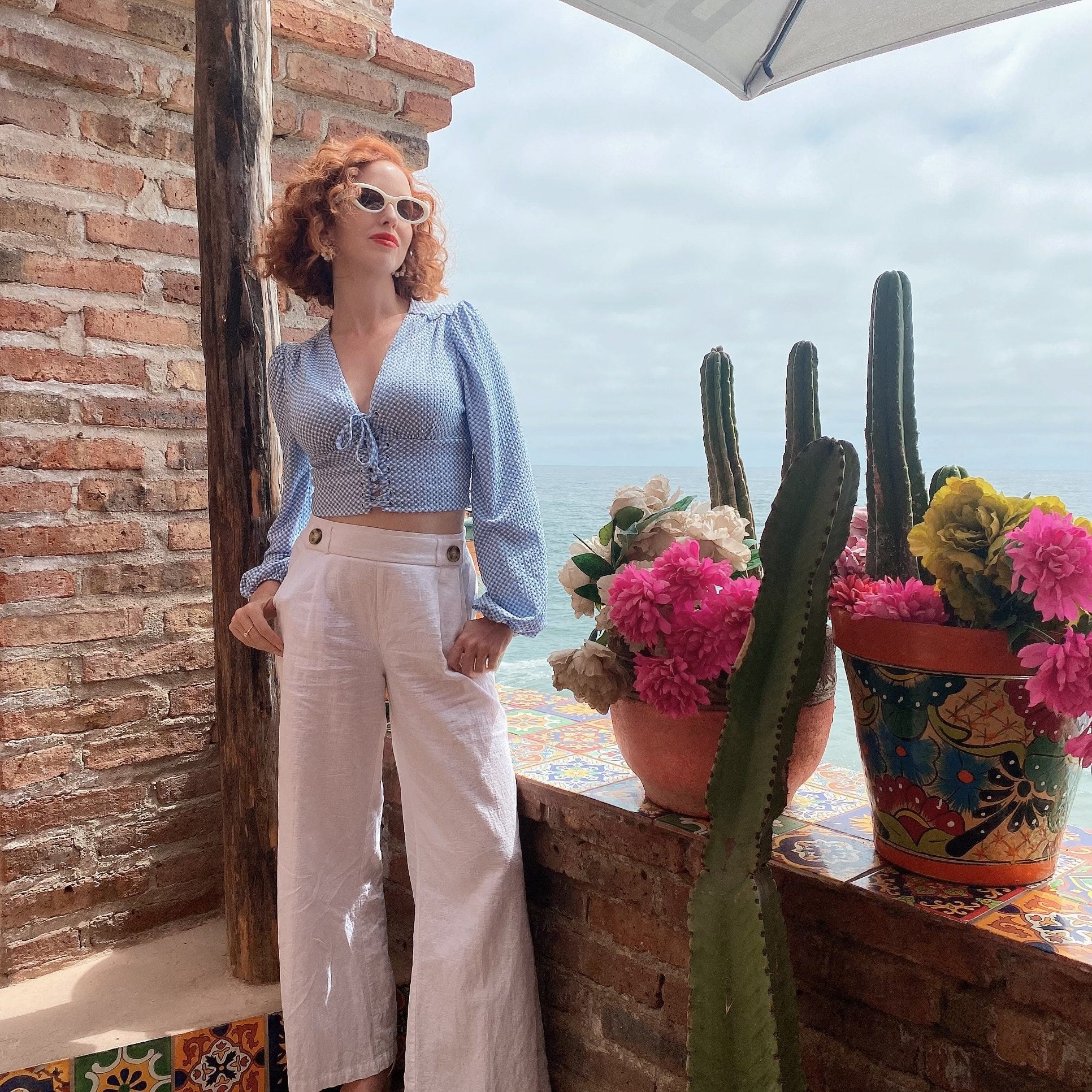A trick that people with medium width can use is to combine opposites. So, you can wear a tight neckline with a loose fabric or an open leg with a fitted tee. Otherwise, you are looking for fabrics which are moderate in weight, so they are neither heavy nor light, not floaty nor stiff - somewhere in the middle creating a balanced look.