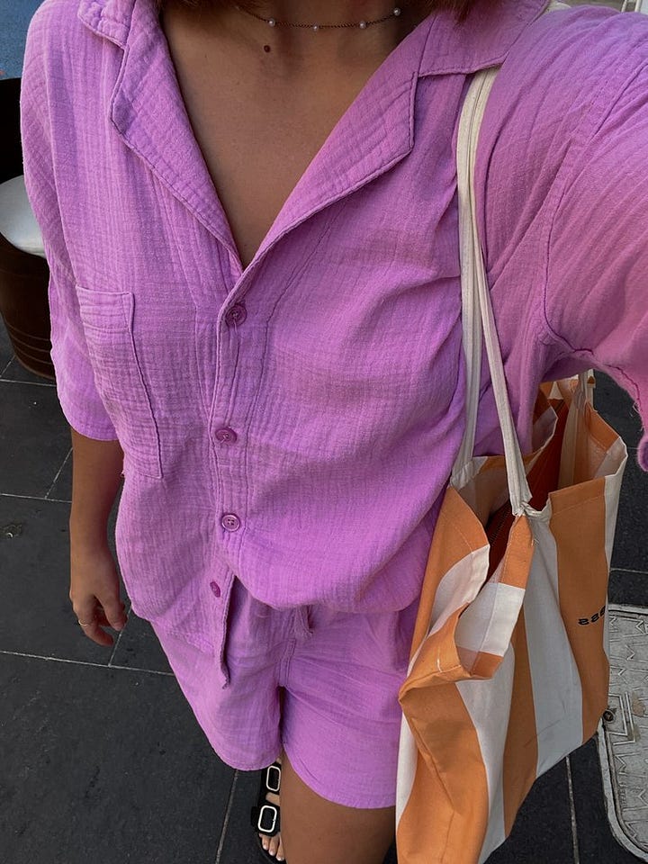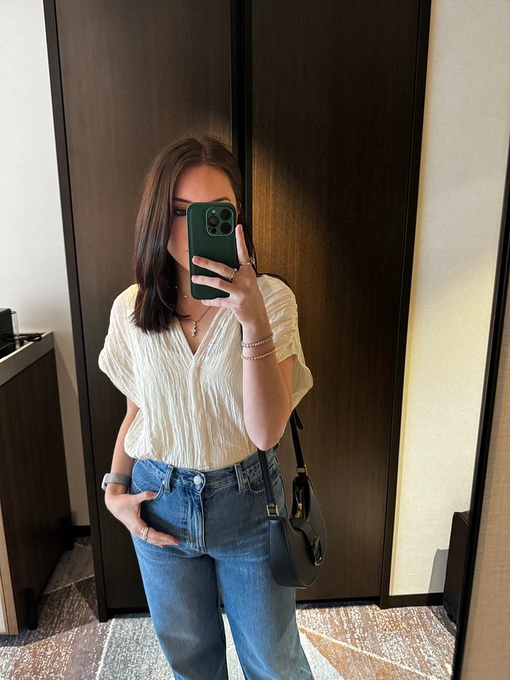 Slightly open necklines which are placed centrally between neck and shoulders are best for the width in your shoulders. Very wide necklines (like a Bardot neckline) would overwhelm your frame, and very narrow necklines (like a crew neck) can feel restrictive. This can include an round neck, boat neck, open shirt, one shoulder tops