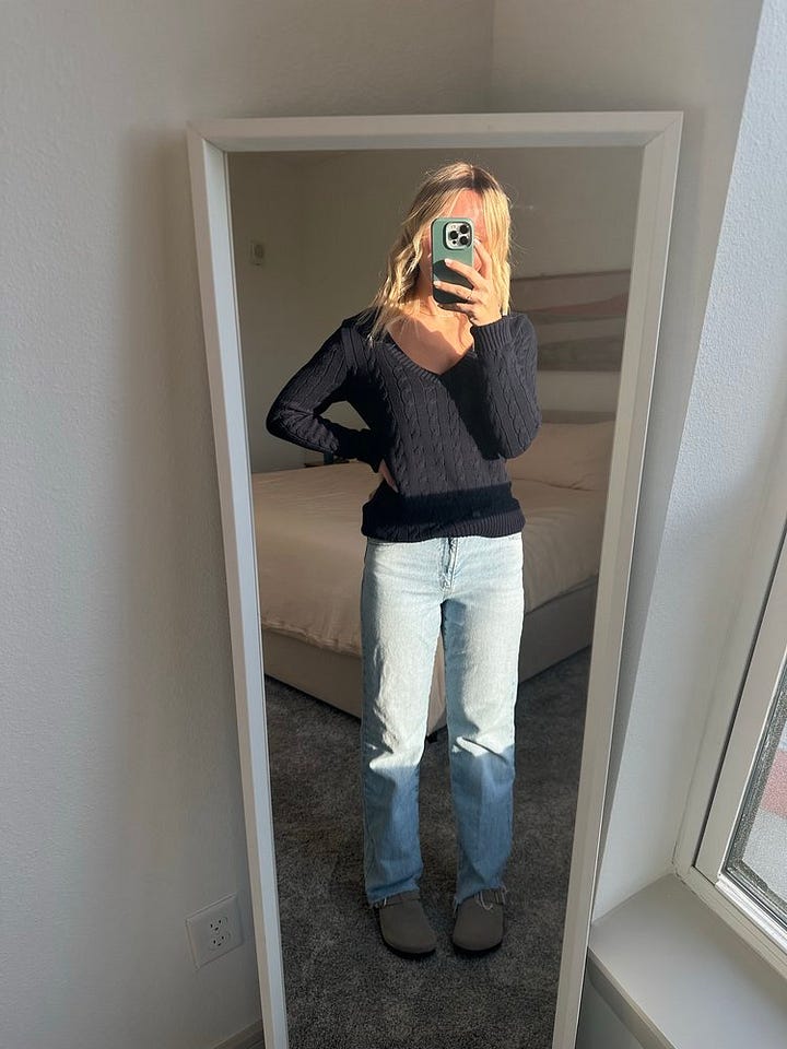 Sleeves, hems, legs should be somewhere between flared and cinched for the best looks for types with medium width. This means they don’t get overwhelmed by very flared or open shapes, and they don’t feel restricted by shapes which are too tight. When looking for jeans you might opt for a straight or boot cut as opposed to a flared or skinny jean. Medium types can use opposites so a light fabric with a flared skirt for instance, rather than, say, a voluminous, heavy, flared skirt.